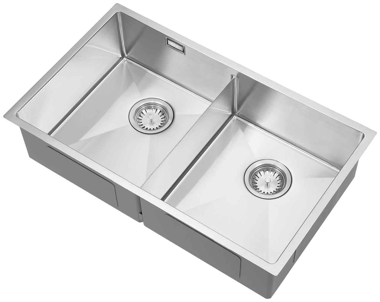 Upgrade your kitchen with the thoughtfully designed 1810 ZENDUO10 351/351U Slim Bridge Undermount/Inset Double Bowl Sink. This premium double bowl sink features a 10mm radius handmade bowl that provides ample space for washing and cleaning. The sleek stainless steel finish and minimalist aesthetic with the two medium sized bowls adds practicality to any kitchen. The dual bowl sink feature clips for undermount or inset installation, ensuring a seamless fit in 800mm cabinets.