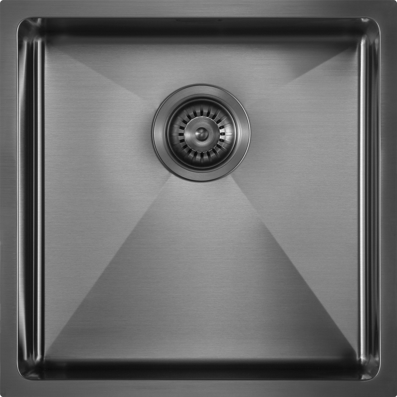 Add modern elegance to your kitchen with the 1810 ZENUNO15 400U Undermount/Inset Single Bowl Sink in Gunmetal. Crafted from robust 1.2mm stainless steel, this beautifully designed sink features sleek 15mm radius corners and a deep satin gunmetal finish that exudes contemporary sophistication. Engineered for 450mm base cabinets, it includes all fittings for undermount or inset installation, offering complete flexibility for your design.